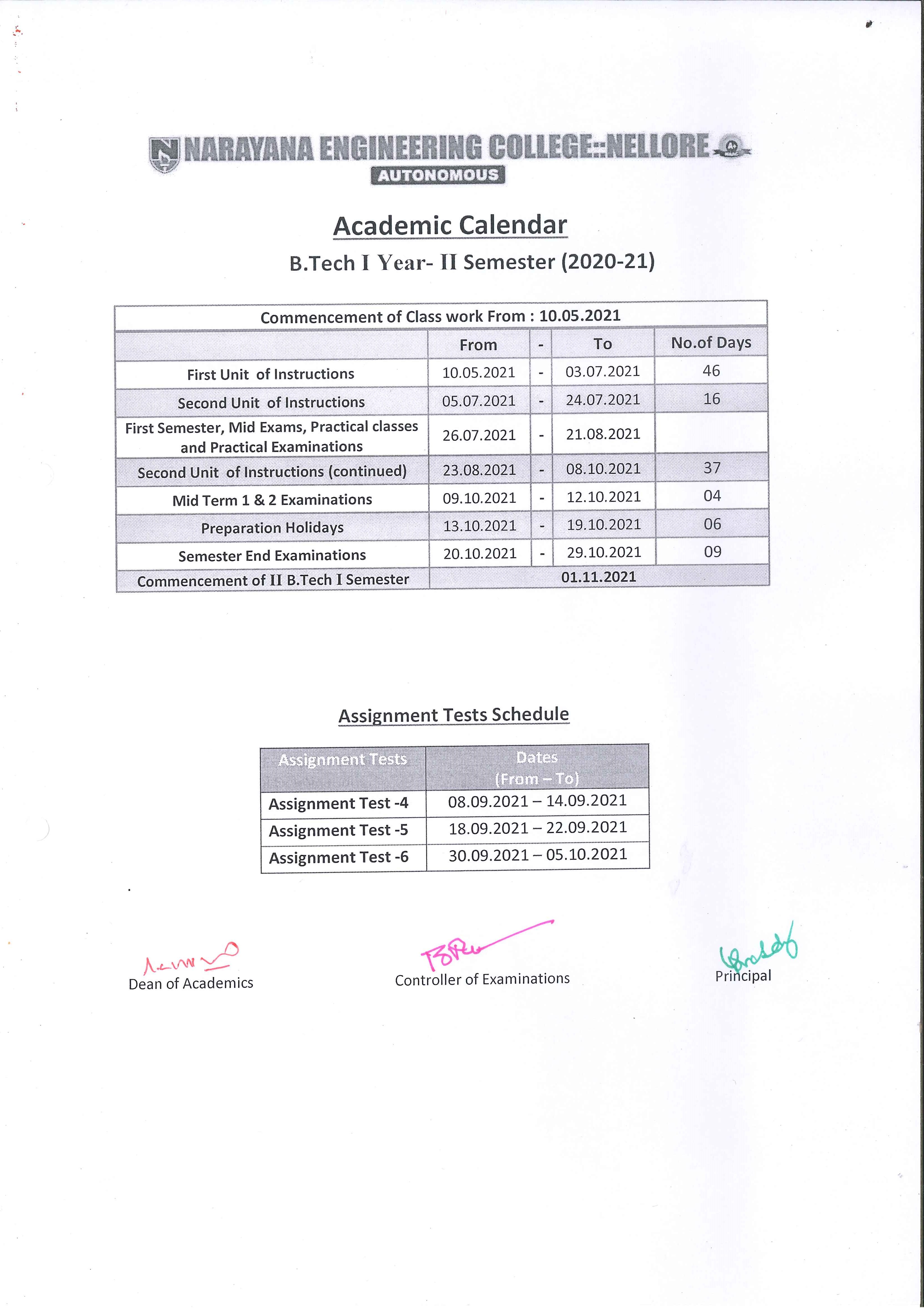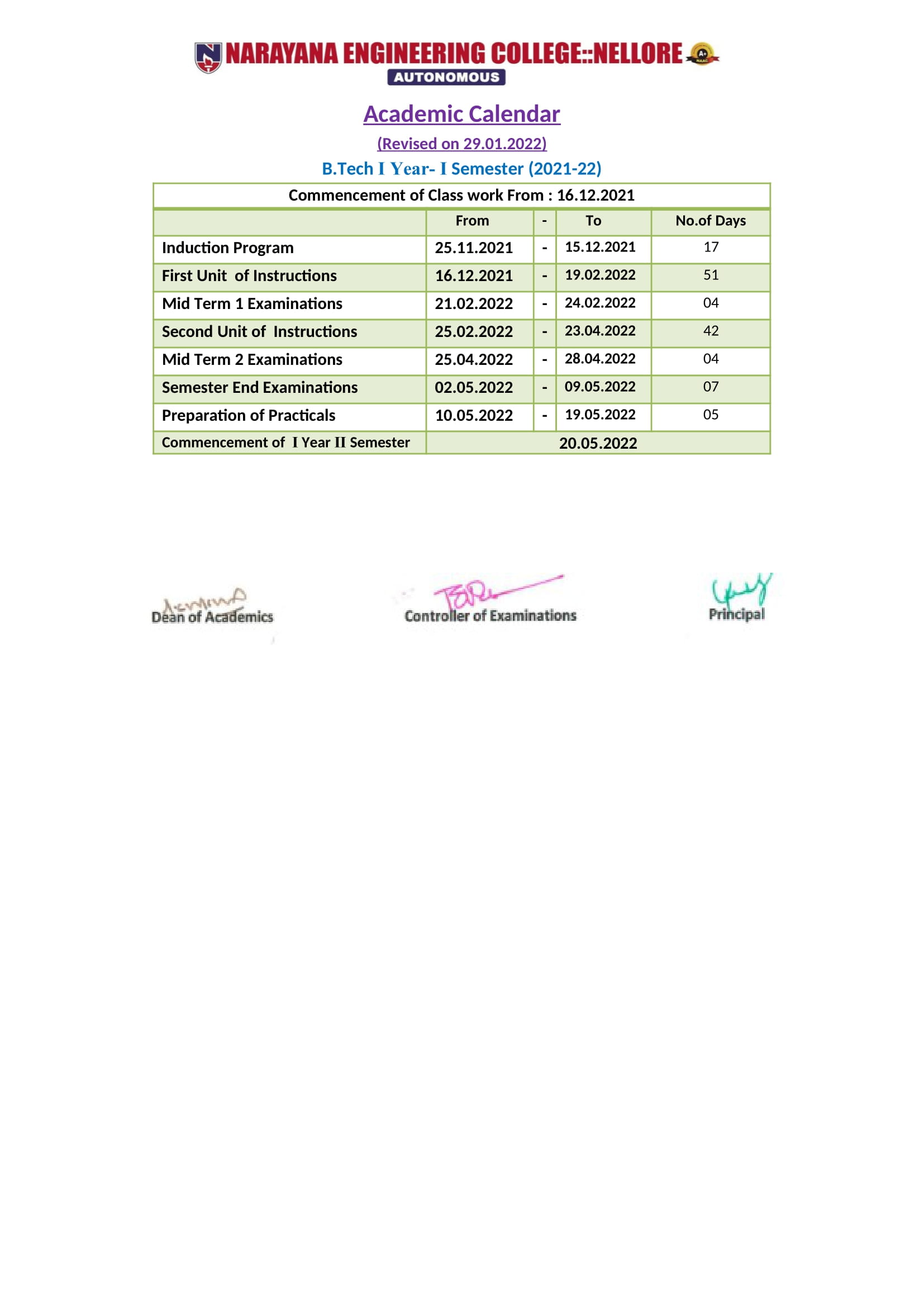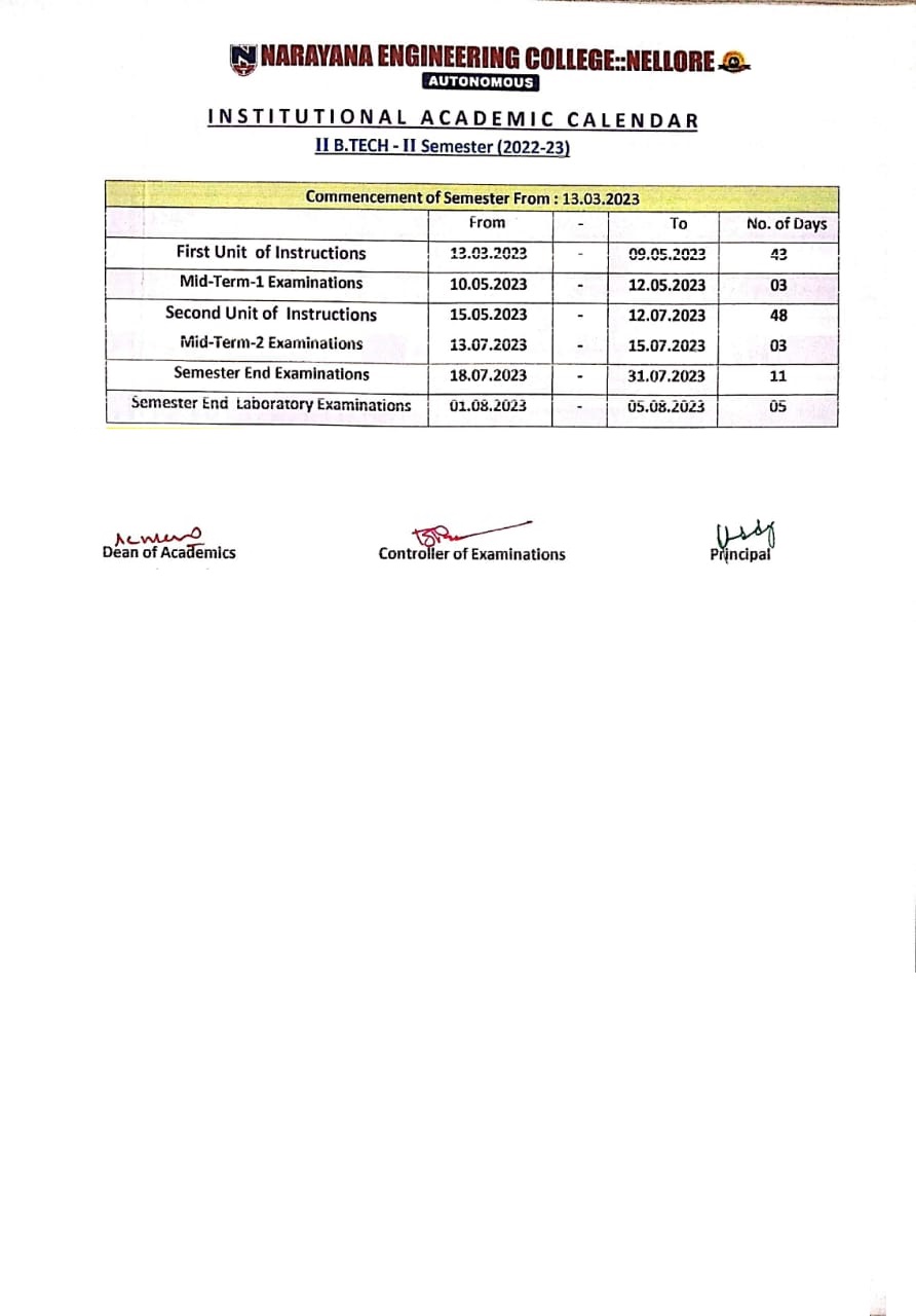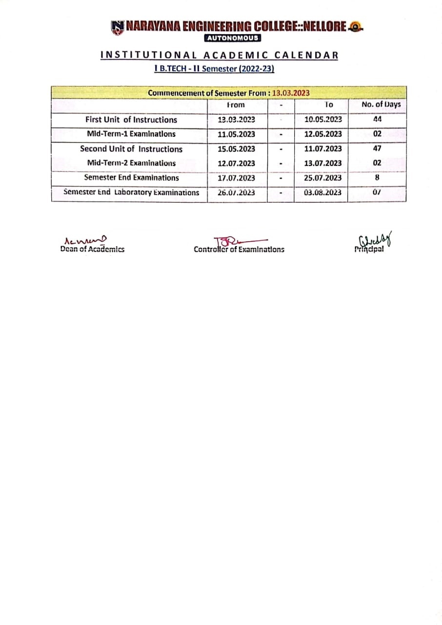 I B.TECH II SEM (NECR B.TECH 20) ACADEMIC CALENDER CLICK HERE