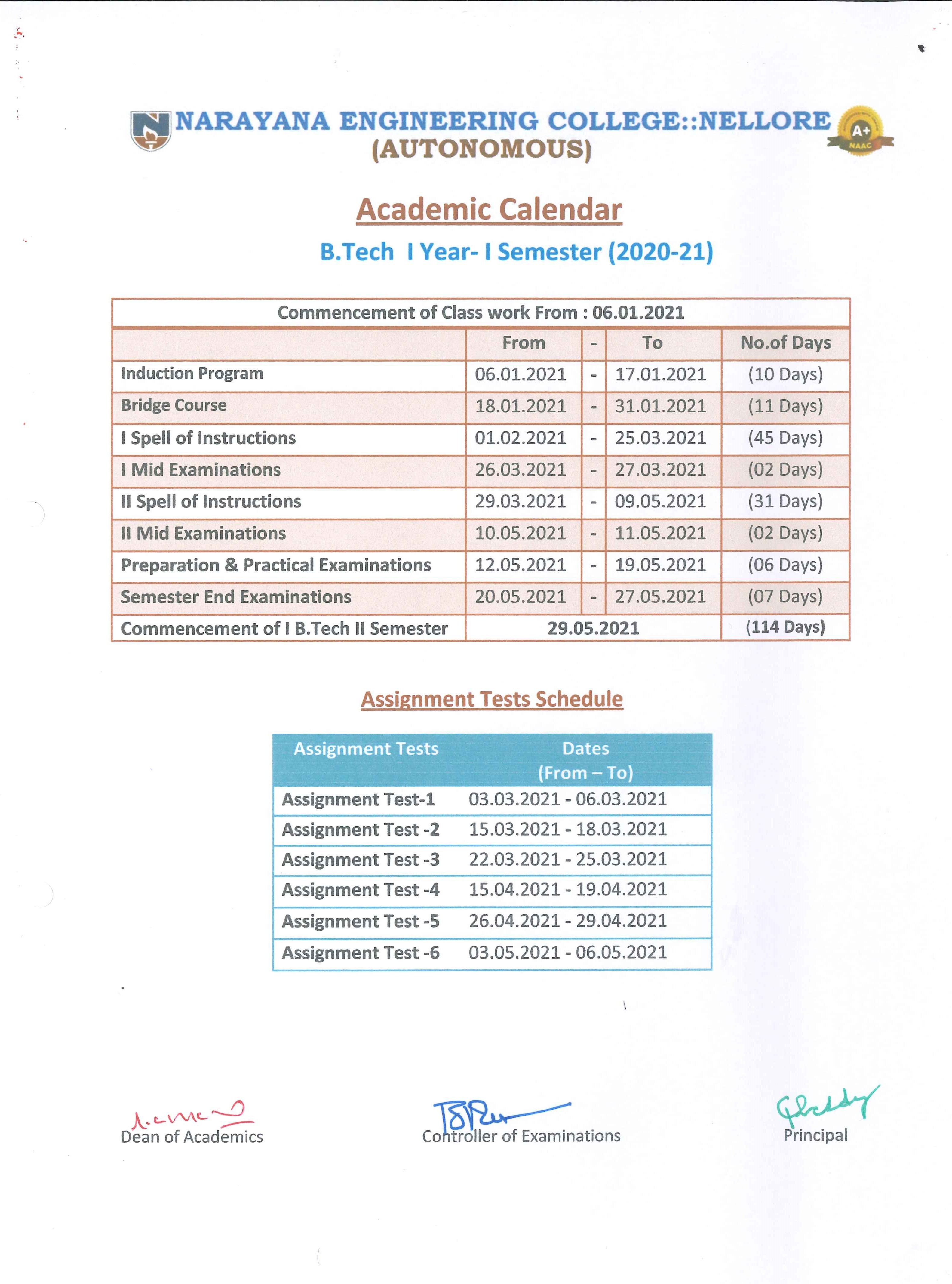 I B.TECH I SEM (NECR B.TECH 20) ACADEMIC CALENDER CLICK HERE