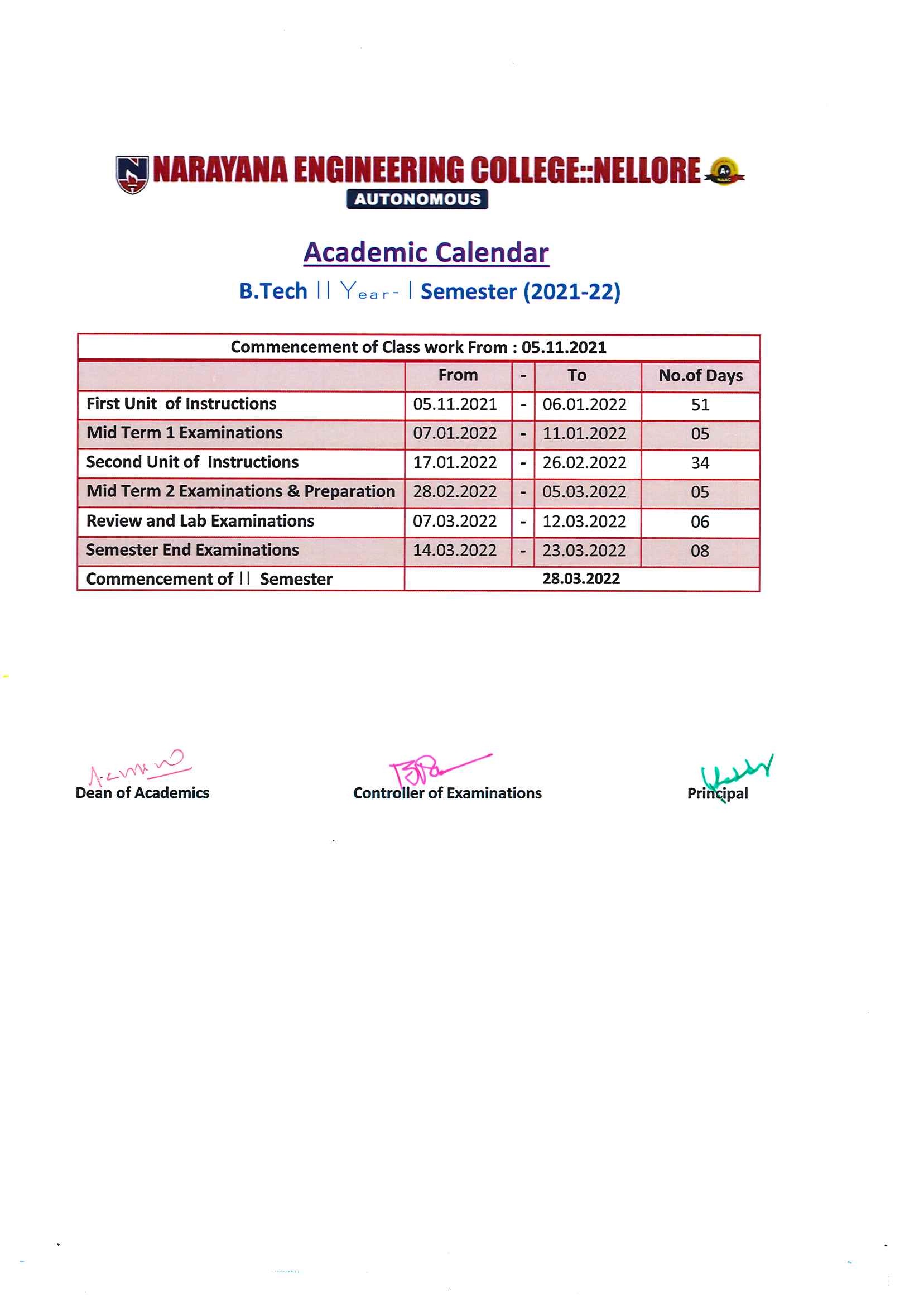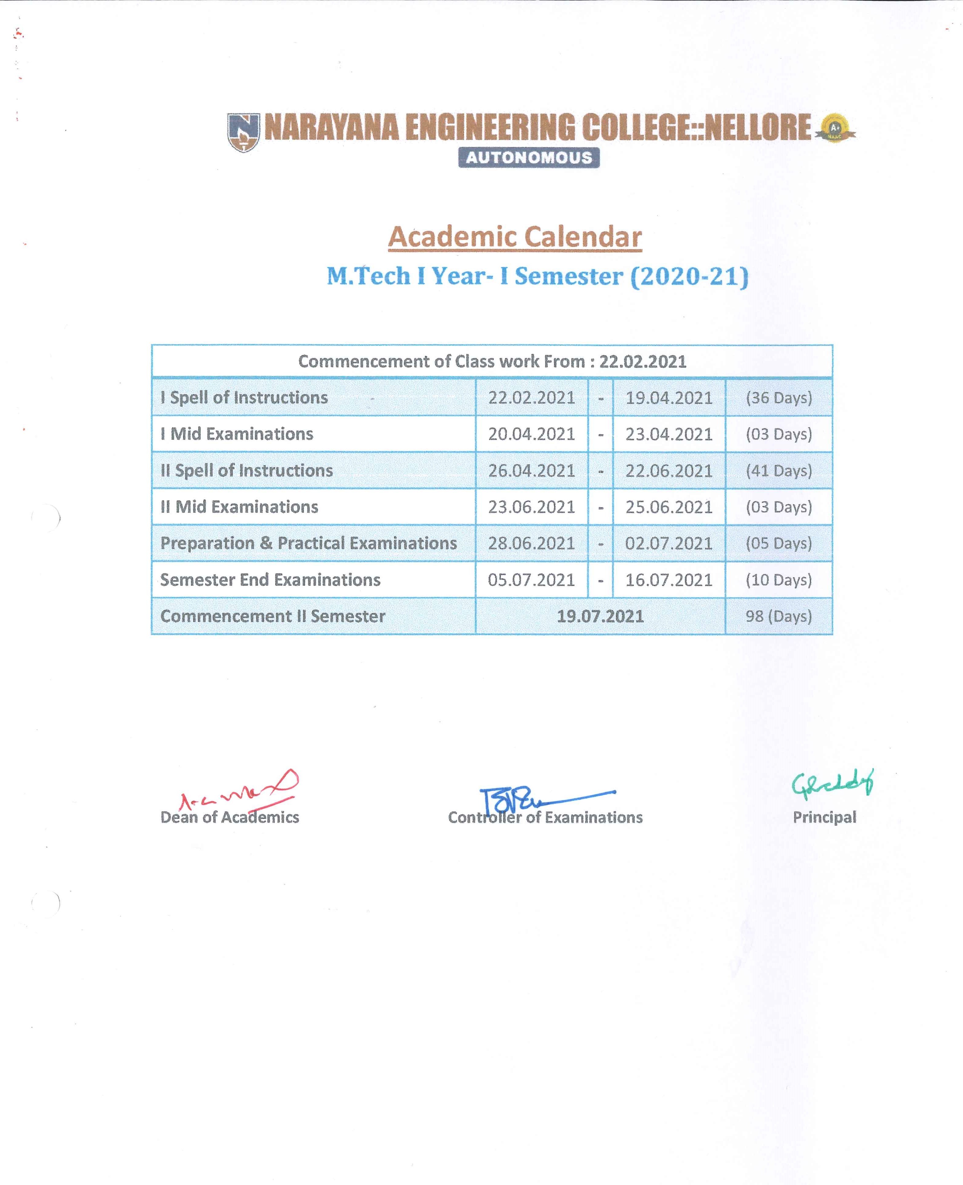 I M.TECH II SEMESTER (NECR M.TECH 20) ACADEMIC CALENDER CLICK HERE