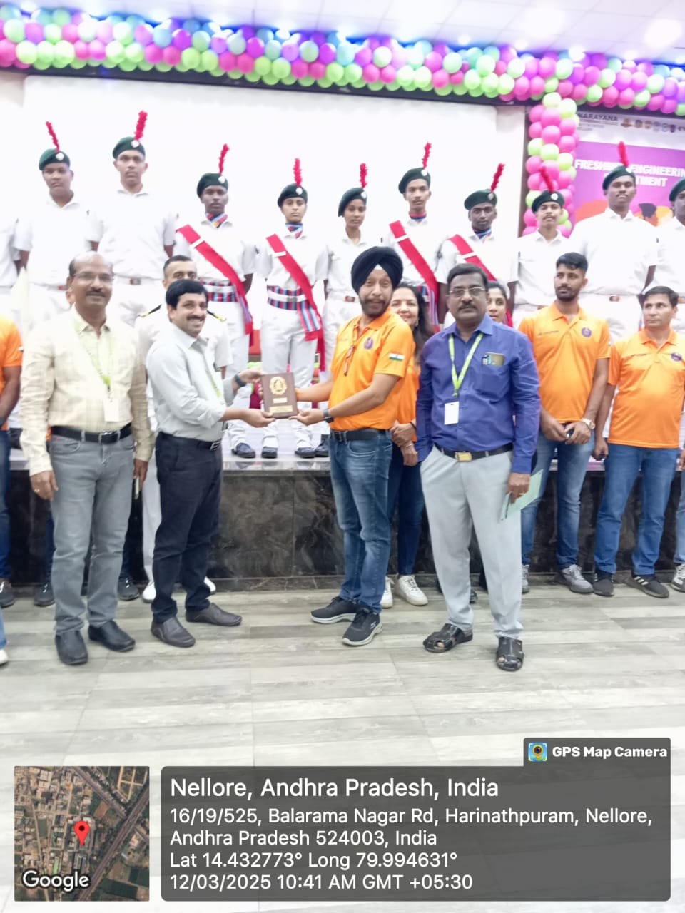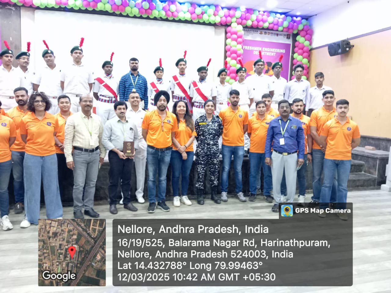 The 10 (A) NAVAL UNIT OF NCC , NELLORE was started in the Year 2024 in Narayana Engineering College, Nellore (Autonomous), with a sanctioned intake of 50 cadets belonging to I B.Tech. students of all Engineering branches. The activities of the NCC unit for any academic year is scheduled in term of training as per the MOTTO of NCC, which includes Foot Drill & Arms Drill, Weapon Training, Firing and Social service. During the Training the cadets has to undergo at least one (Unit/State/National) level camp conducted, to get the eligibility to write the "B" and "C" certificate exams. In Narayana Engineering College, Nellore (Autonomous), the required infrastructural facilities were provided to the cadets to conduct firing and drill practices, personality development and voluntary service programmes.